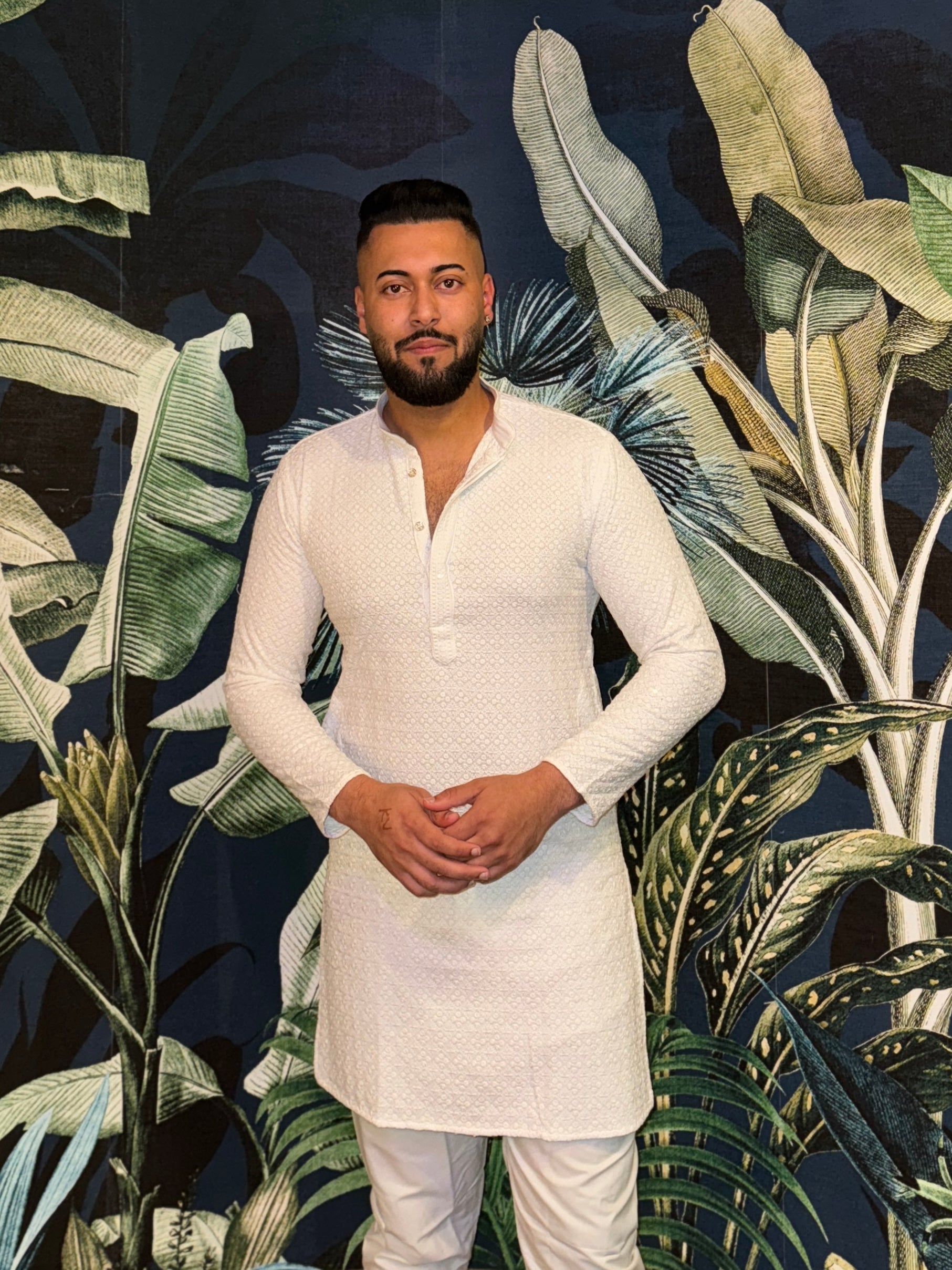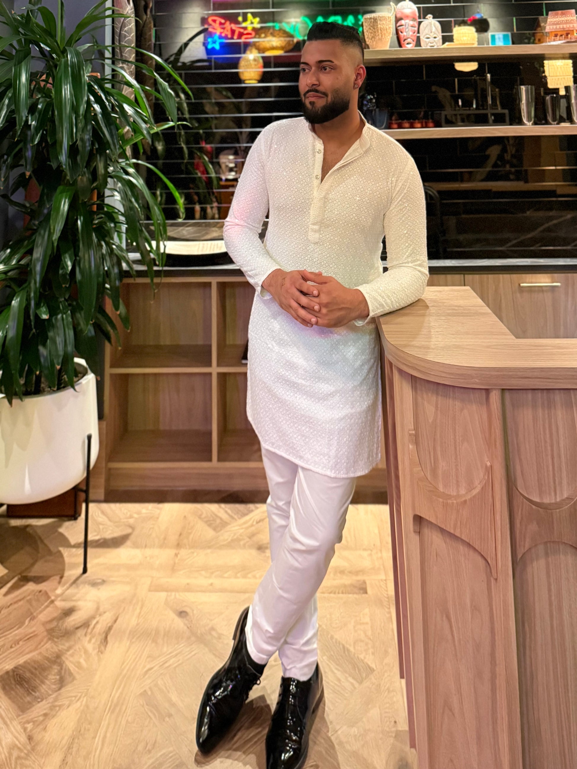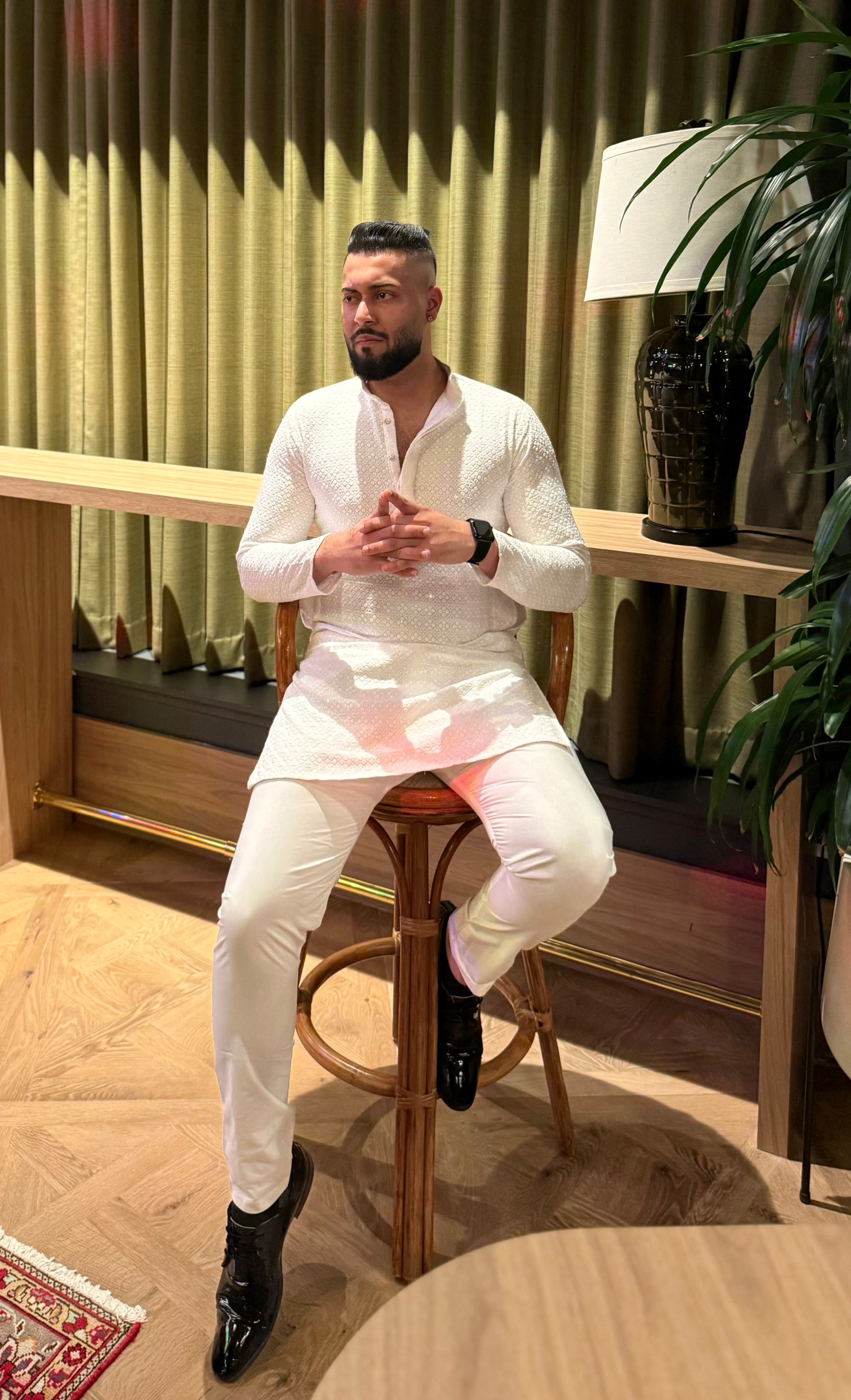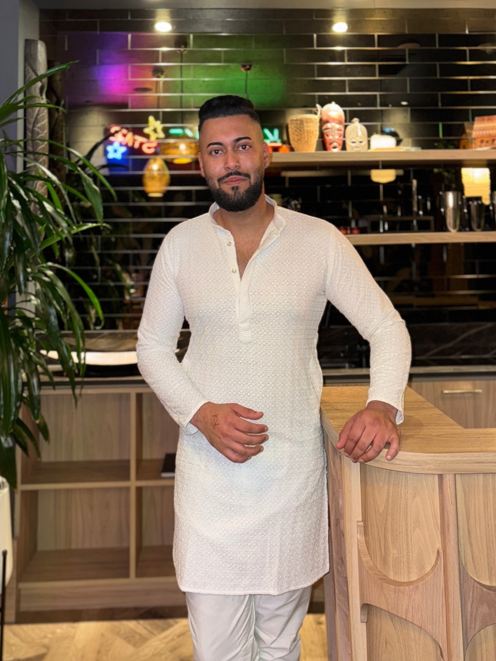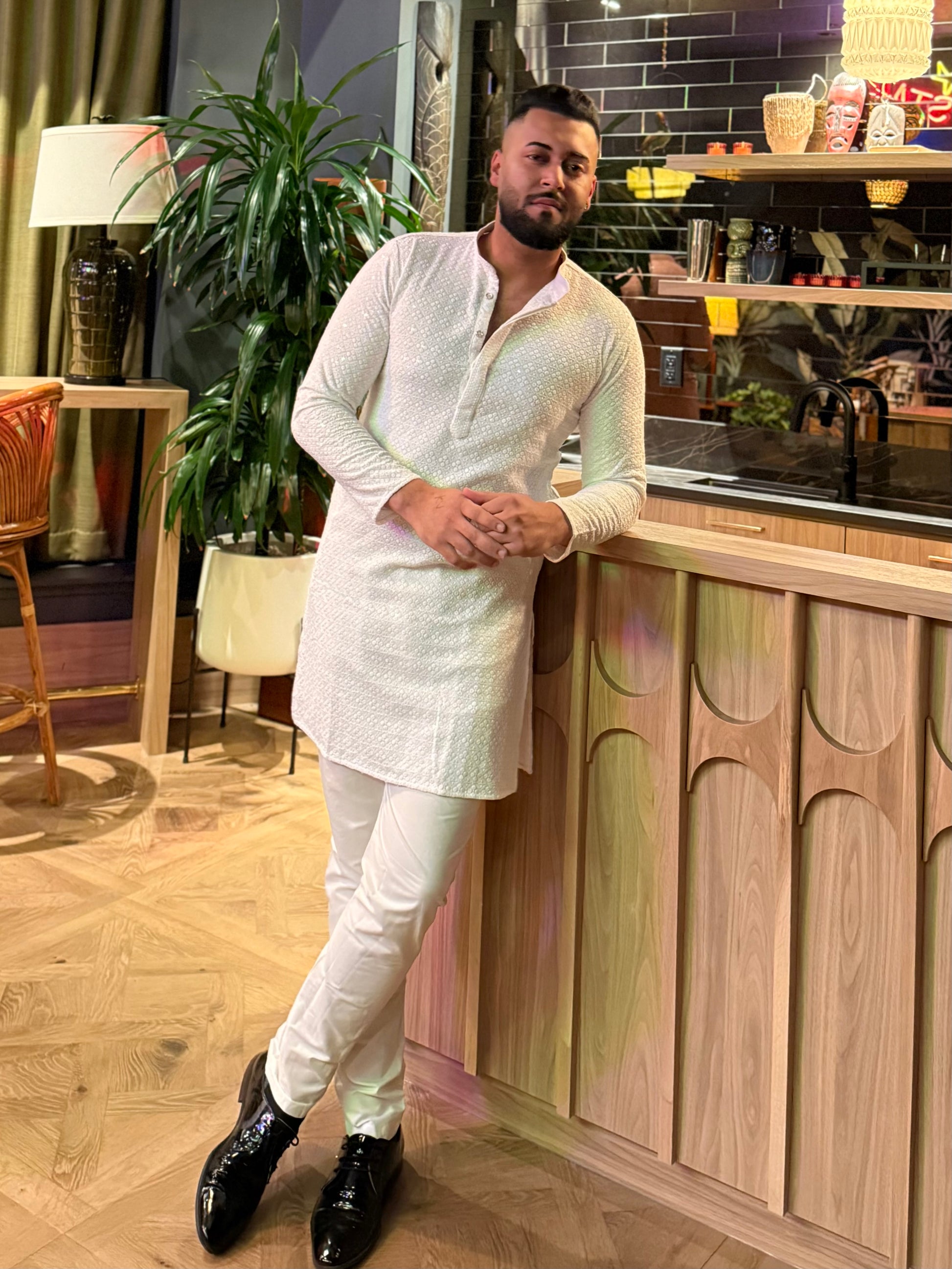 Elevate your ethnic style with this Handcrafted Chikan Work Men’s Kurta Pajama Set, inspired by the timeless artistry of Lucknowi embroidery. Made from premium cloth, this kurta offers unmatched comfort and breathability, perfect for festive occasions, weddings, and cultural celebrations.
